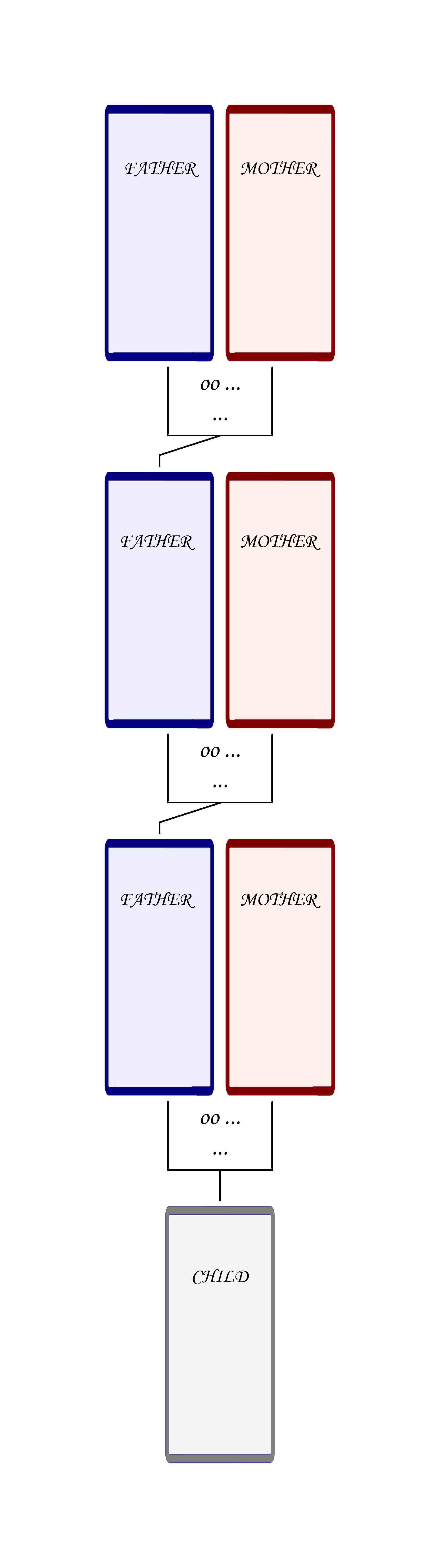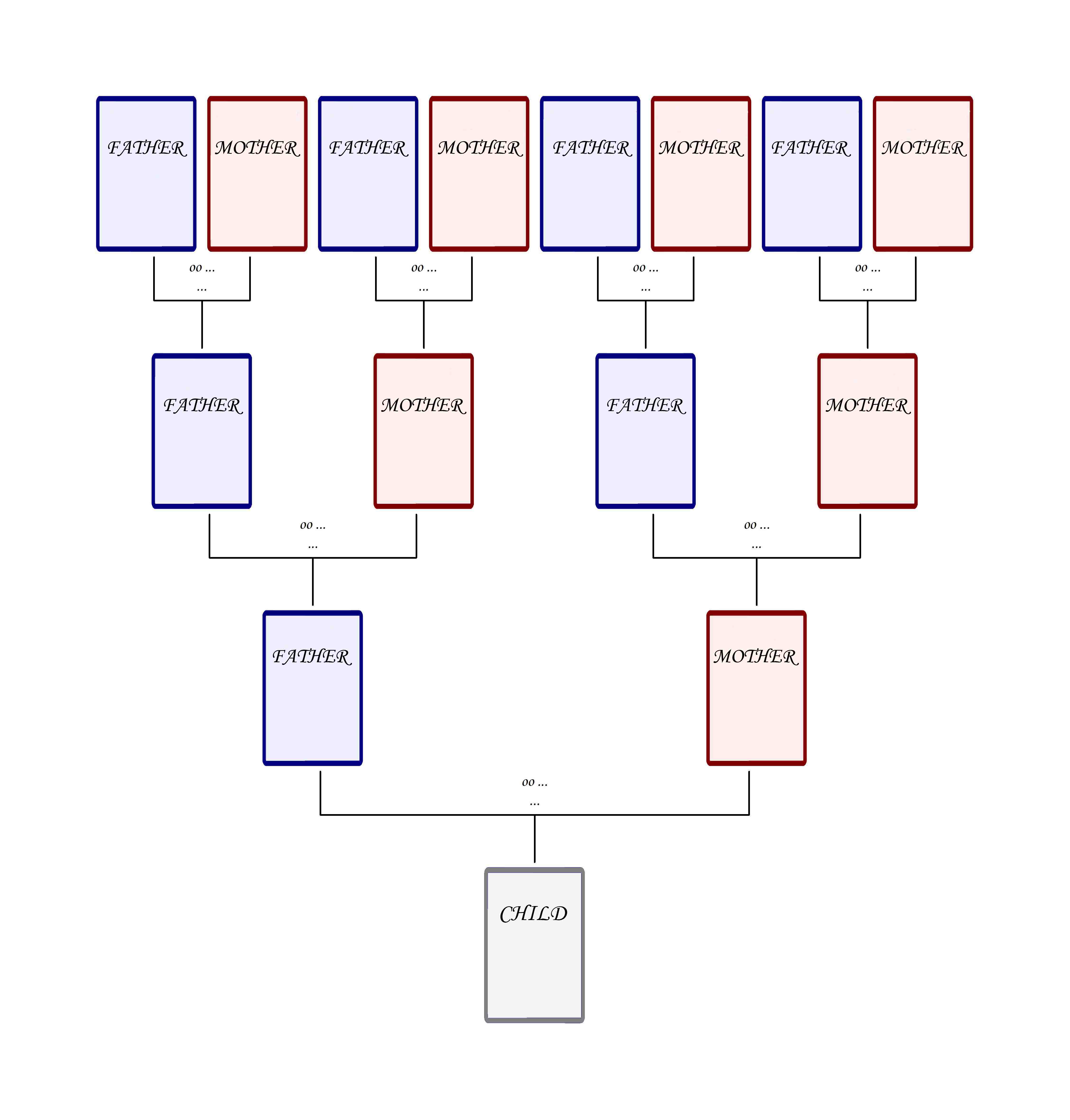 We are looking for ancestors of the initial person in all lines - paternal and maternal.